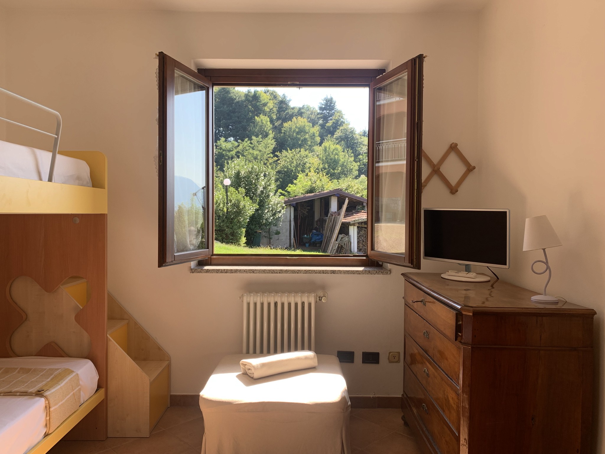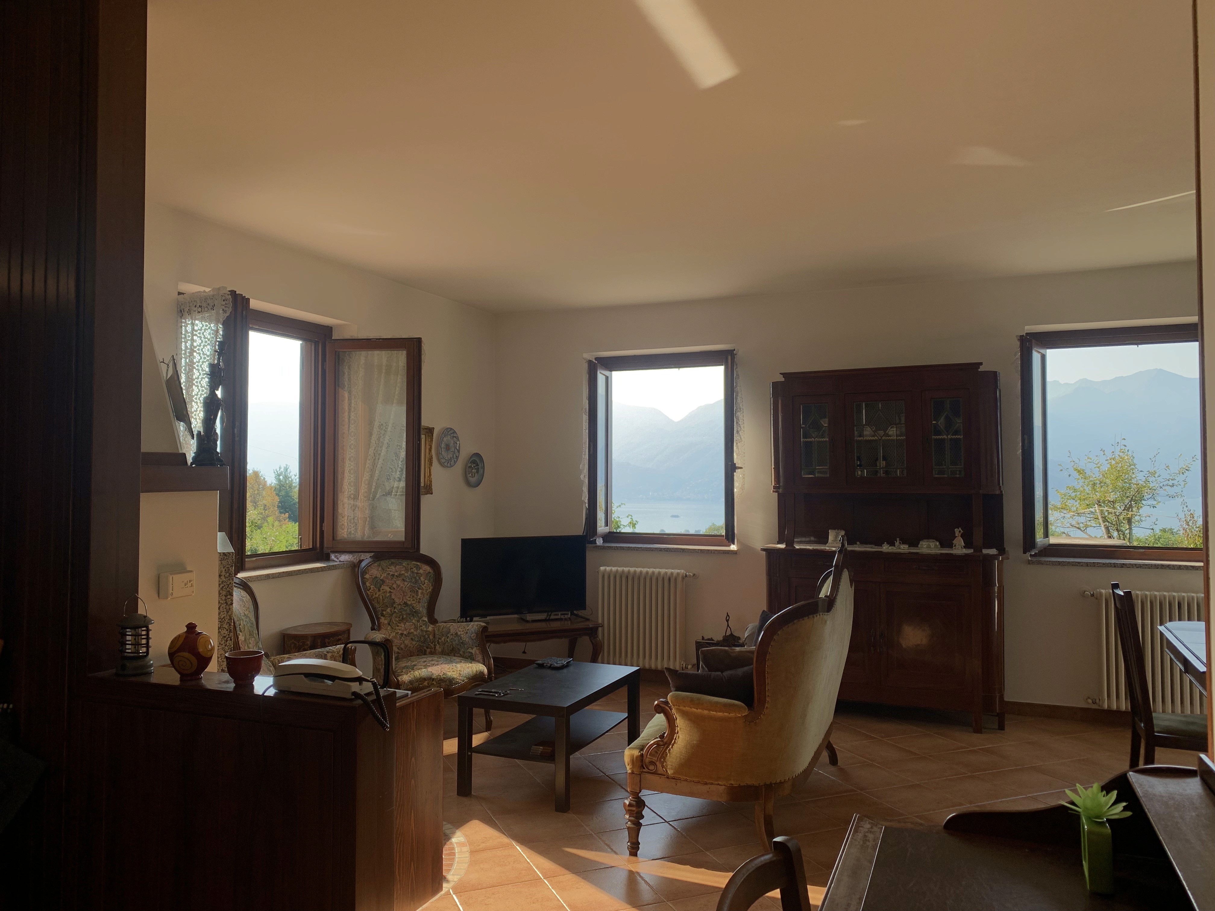 Two bedrooms (suitable for 5 guests), living room, independent kitchen, and two bathrooms. Outdoor space for relaxing, with a panoramic view of Lake Maggiore and the surrounding mountains. Down the mountain, you reach the lakeside promenade and the charming center of Luino, with its cafés, restaurants, and the famous weekly market.